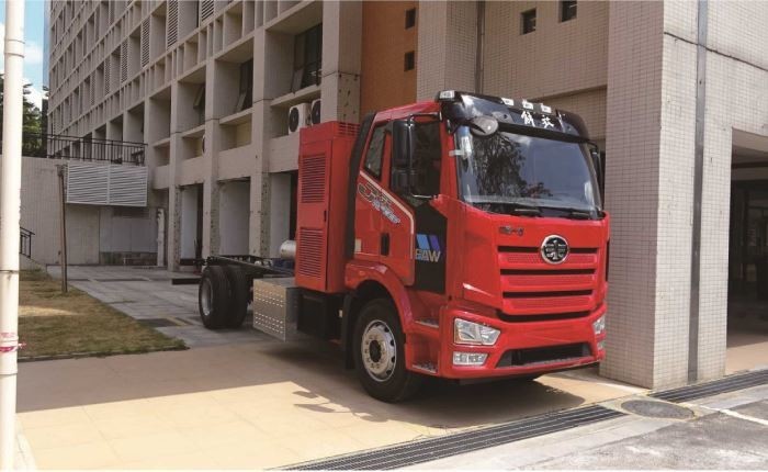 在接下來的技術介紹環節,廣東能創科技有限公司的技術人員自豪地介紹:“這臺重卡沒有噪音,沒有大型的儲氫罐,續航里程更長”。這意味著能創自主研發的車載甲醇重整制氫系統在測試階段取得了圓滿成功,該成果的落地表明將“甲醇重整制氫技術”和“燃料電池發電技術”整合作為重卡的動力驅動單元技術獲得重要突破。