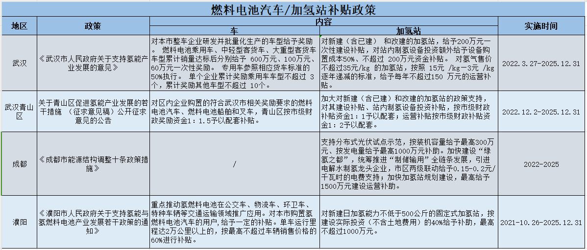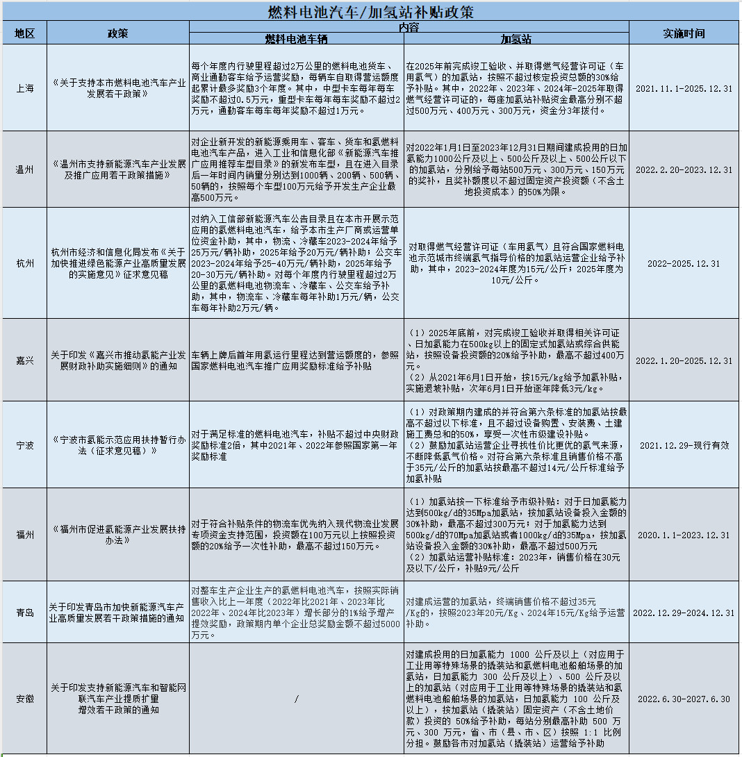 隨著氫燃料電池產業鏈的不斷完善,疊加各省市政策的引導,我國的氫能及燃料電池產業發展十分迅速。以下是我司整理匯總的各省市現行有效的燃料電池車/加氫站補貼政策: