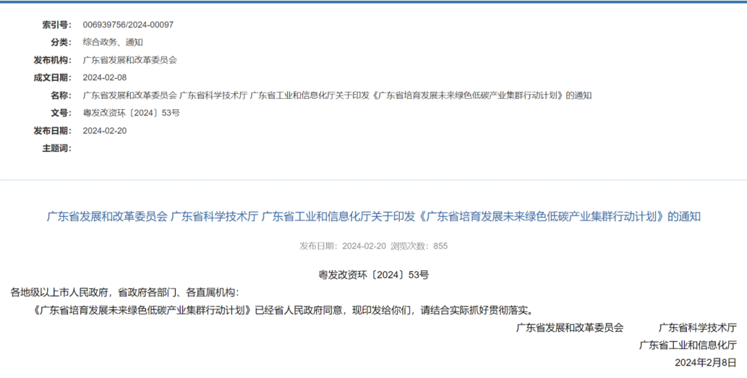 近日,廣東省發展和改革委員會、廣東省科學技術廳、廣東省工業和信息化廳聯合發布《廣東省培育發展未來綠色低碳產業集群行動計劃》。
