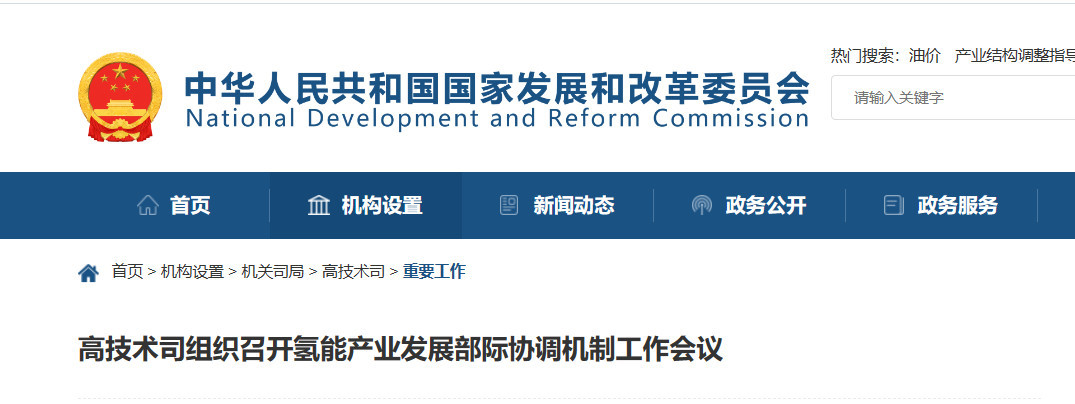 According to the National Development and Reform Commission, on April 12, the Department of High Technology organized a meeting on the inter-ministerial coordination mechanism for the development of the hydrogen energy industry, to comprehensively summarize the progress of the work and study and deploy the next key tasks.