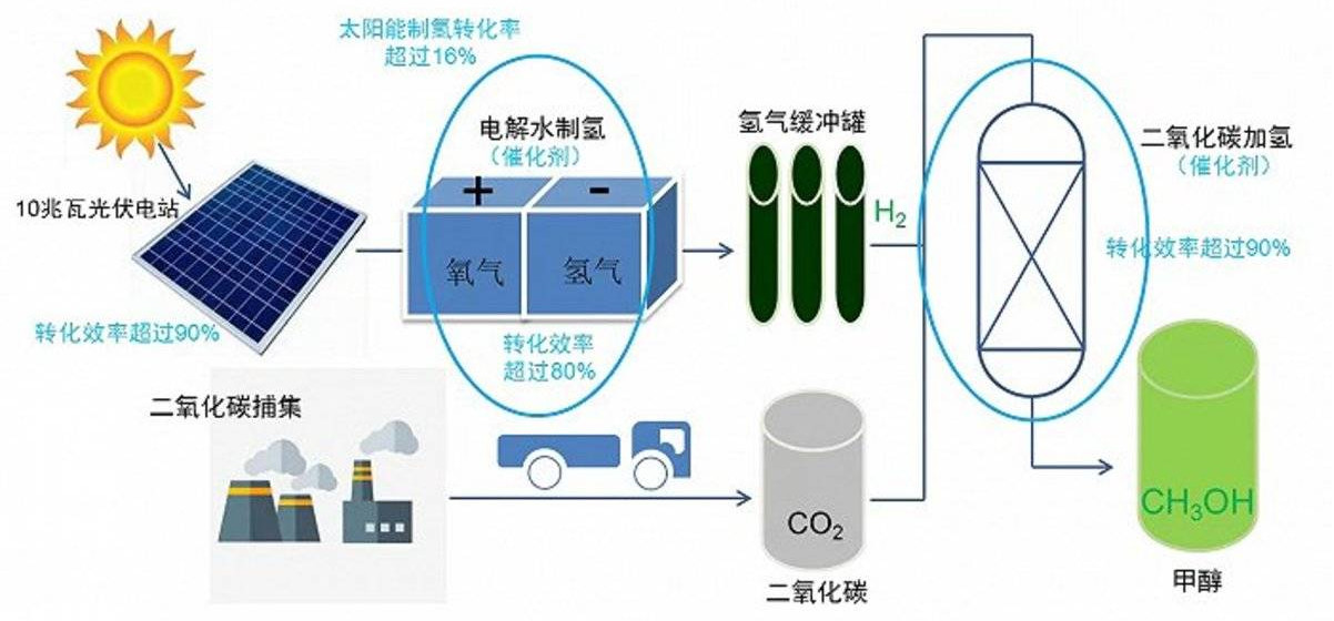 At present, liquid sunshine methanol production technology is available to cope with the carbon emission dilemma of methanol application. Liquid sunlight is the combination of hydrogen produced from solar / wind energy with captured carbon dioxide to produce methanol. The methanol generated by this route can store hydrogen in liquid form, convenient transportation, safe and efficient, and can also achieve closed loop carbon emissions, so as to achieve the goal of carbon neutrality.